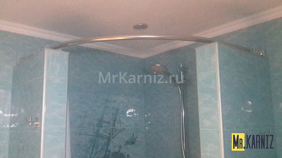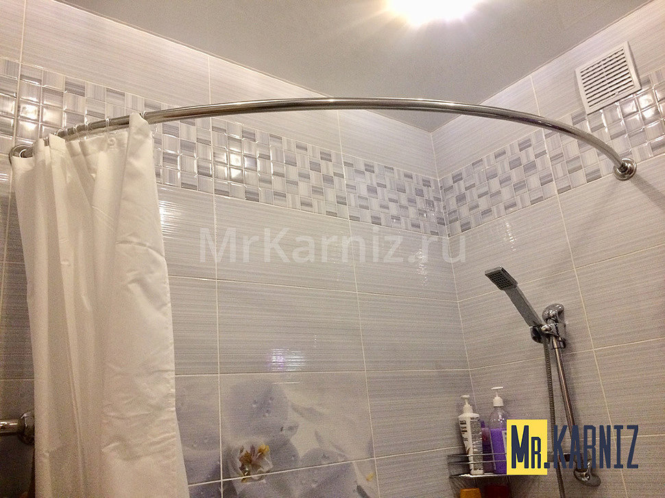 Они могут размещаться по внешним краям ванной, могут быть шире нее. Также по желанию карниз можно завести внутрь ванной.